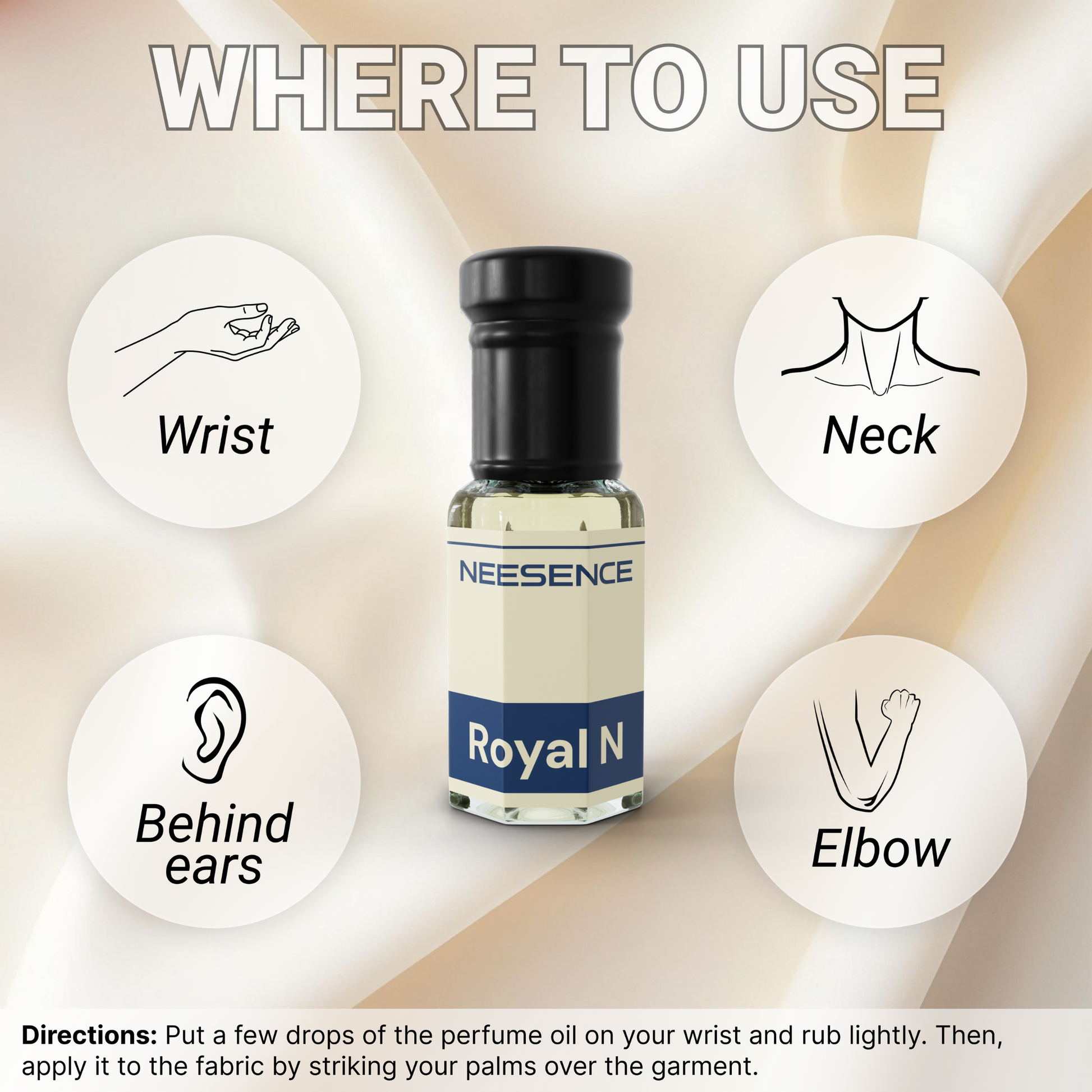 Put one or a few drops of the perfume oil into the area of the wrist and rub it together lightly. After that, you are required to apply the attar perfume oil softly onto the cloth by striking your palms over the garments.
